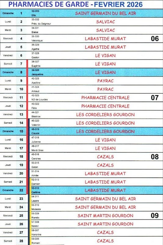 PLANNING DES PHARMACIES DE GARDE FEVRIER 2026