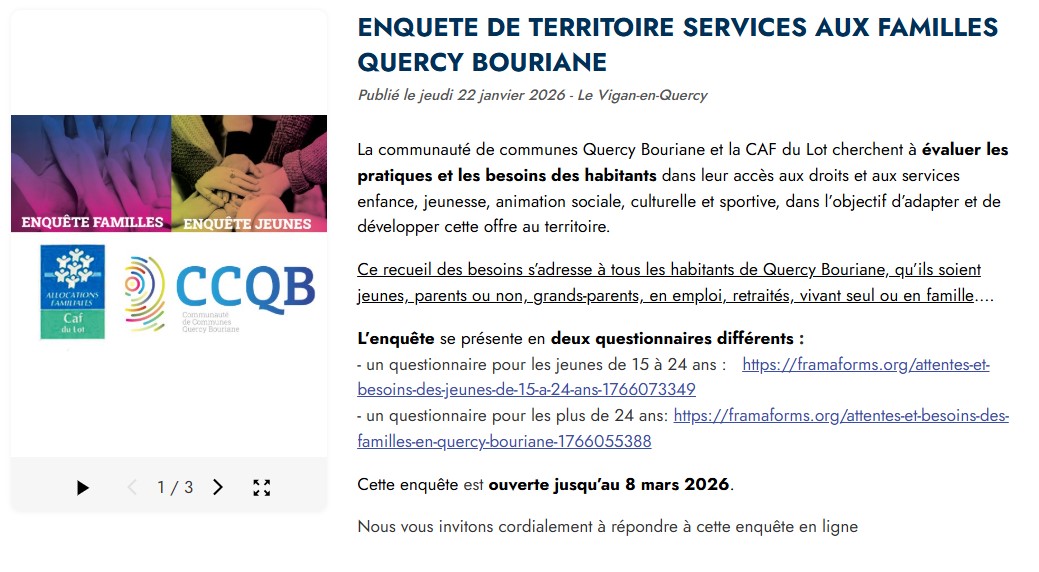 ENQUETE DE TERRITOIRE SERVICES AUX FAMILLES QUERCY BOURIANE
