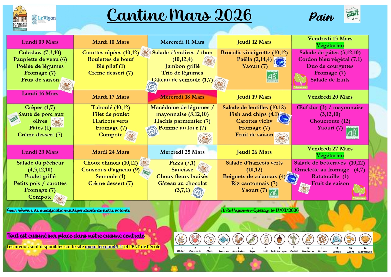 MENUS CANTINE