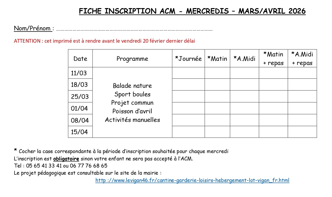 Programme ACM vacancesFévrier 2026